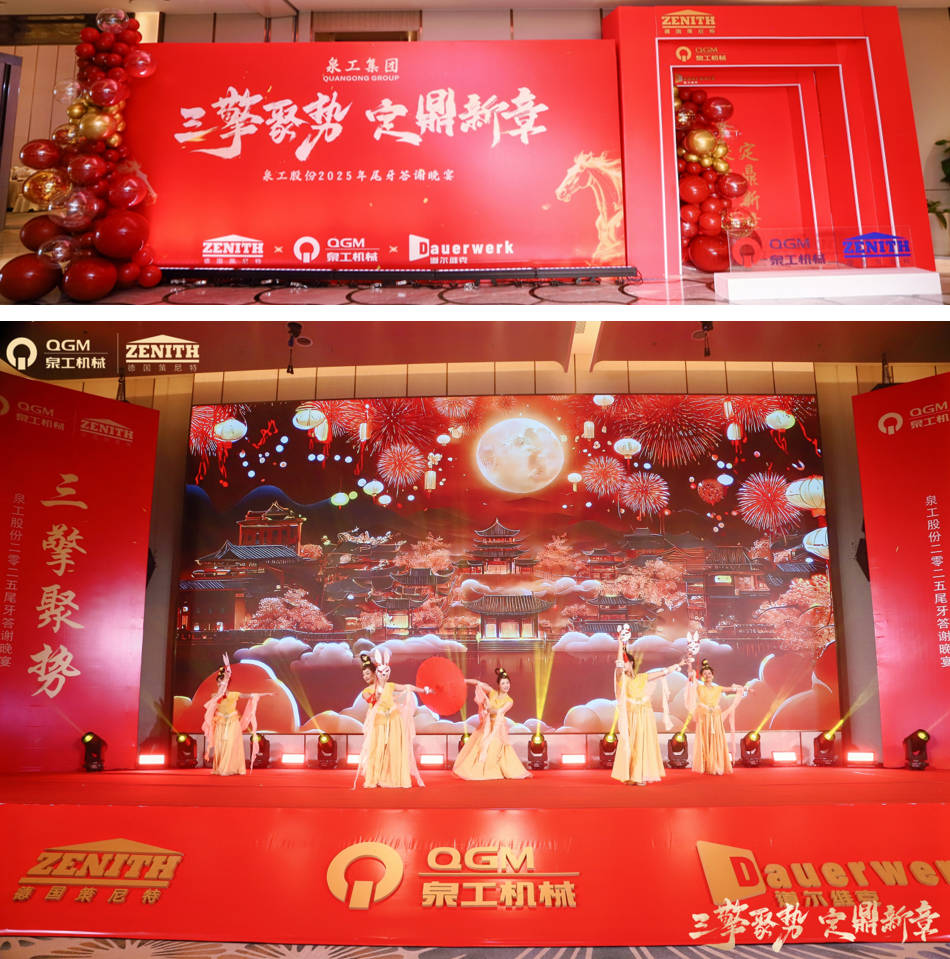 საახალწლო სადღესასწაულო ატმოსფეროს ფონზე, Quangong Co., Ltd.-მ გრანდიოზულად უმასპინძლა 2025 წლის დასასრულის მადლიერების ბანკეტს. თემის ქვეშ "სამი ძრავა აგროვებს იმპულსს, აყალიბებს ახალ თავს", Quangong-ის ყველა თანამშრომელი შეიკრიბა, რათა მოეთხროთ თავიანთი სწრაფვის მოგზაურობის შესახებ, დასახონ განვითარების გეგმები და წამოიწყონ ახალი წლის მოგზაურობა სიცილისა და სიხარულის ფონზე.